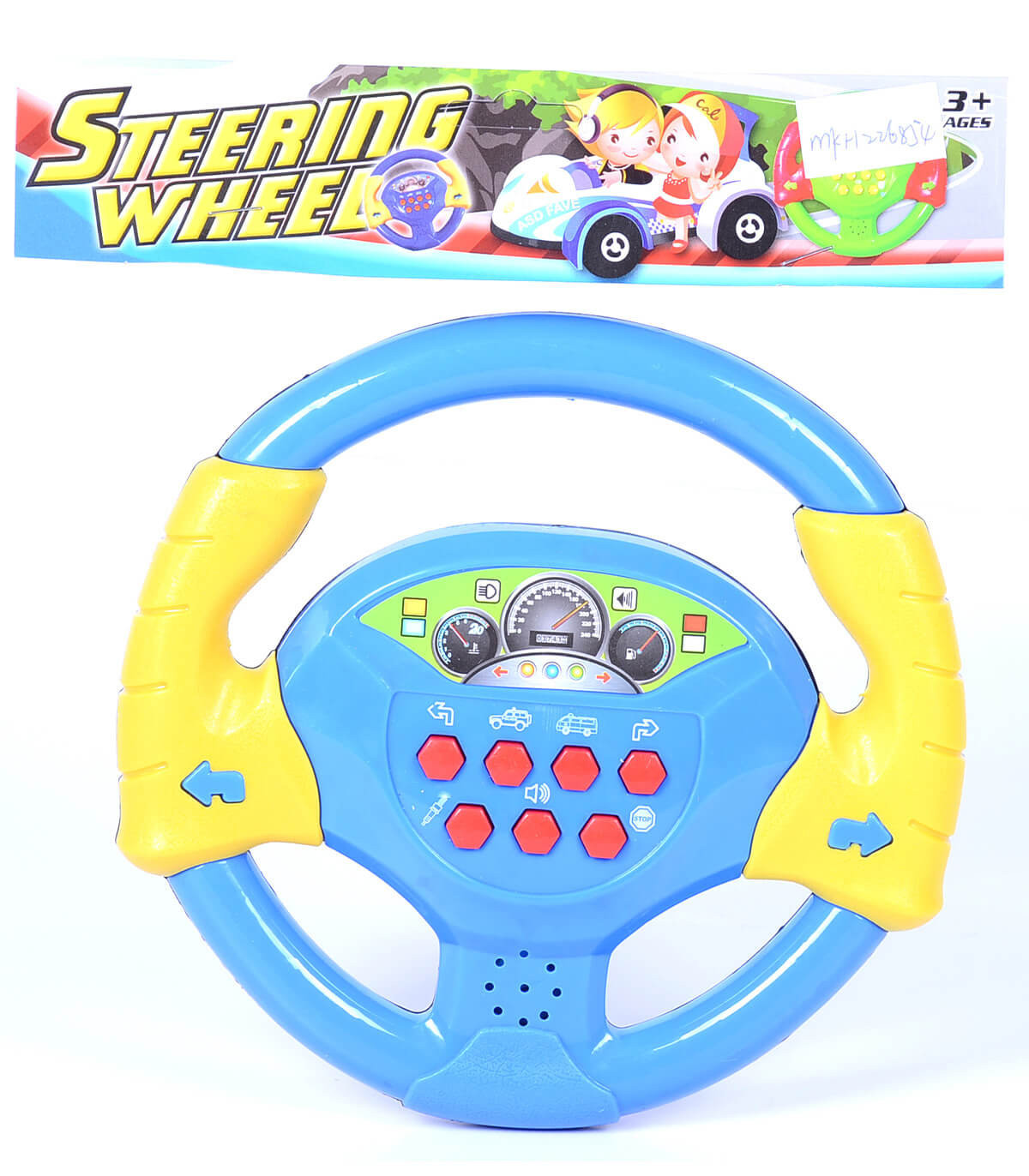 All you need to do is just to insert the batteries and enjoy playing the sounds that each button makes while pressed: engine start, horn, turn signals, brakes and extra 2 different sirens. Every sound that the steering wheel makes is also accompanied by luminous signals.