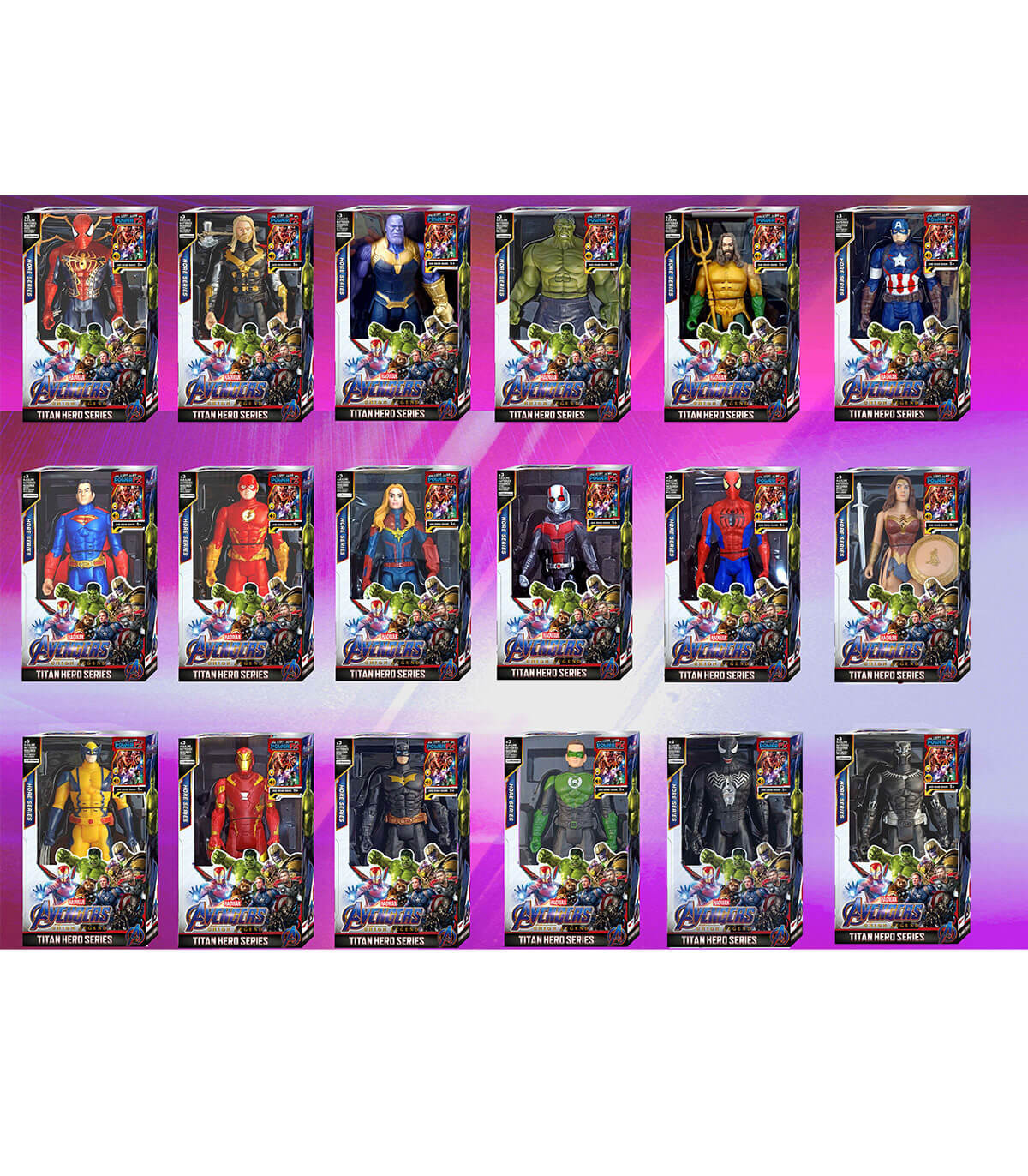 Welcome to the fantastic world of superheroes! Choose from all 16 figures and immerse yourself in their world of fascinating adventures and eternal battles between Good and Evil. Or make a collection of all the characters, so the fun is more than guaranteed! The figures have movable limbs and when you remove the tape on the back, they play sounds and lights.