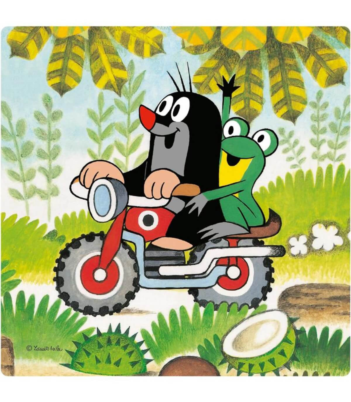 Puzzle The Little Mole and friends for babies with 3, 4, and 5 large pieces that copy the outlines of the characters. Made from durable and non-toxic cardboard, the puzzle has a safety certificate and is harmless to health, even if swallowed. Suitable for girls and boys over 2 years old.
