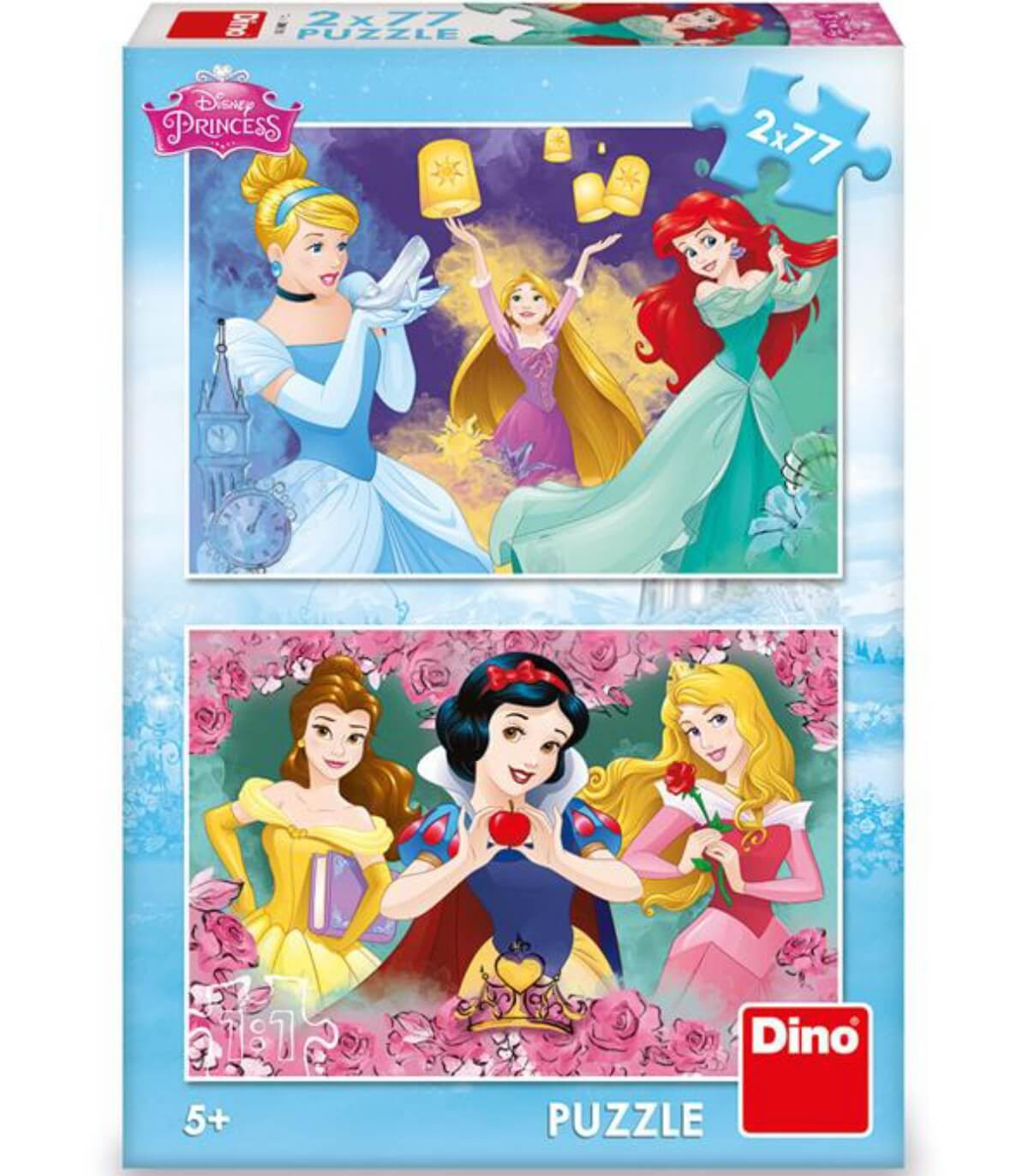 2 in 1 Disney Princess Puzzle, designed for girls over 5 years old. The package contains 2 puzzles of 77 pieces each. A suitable gift for a birthday, Christmas, or other occasion.