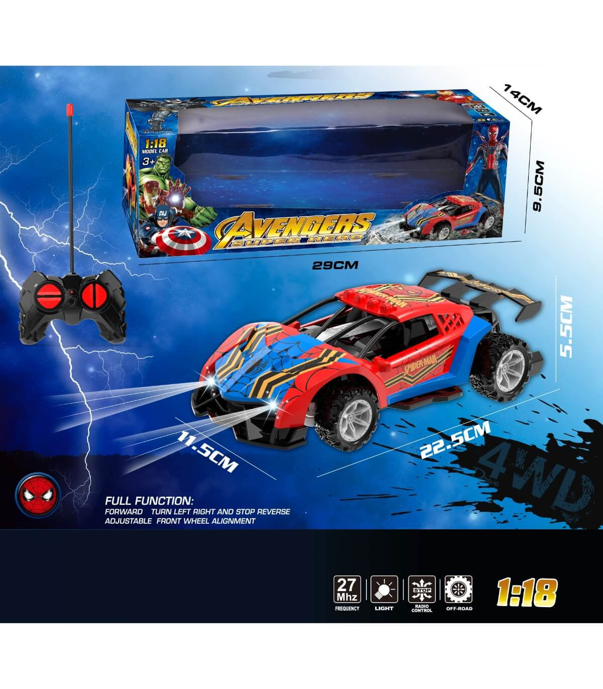 CHILDREN'S SPORTS CAR WITH SPOILER AND REMOTE CONTROL 4 DIRECTIONS SPIDER